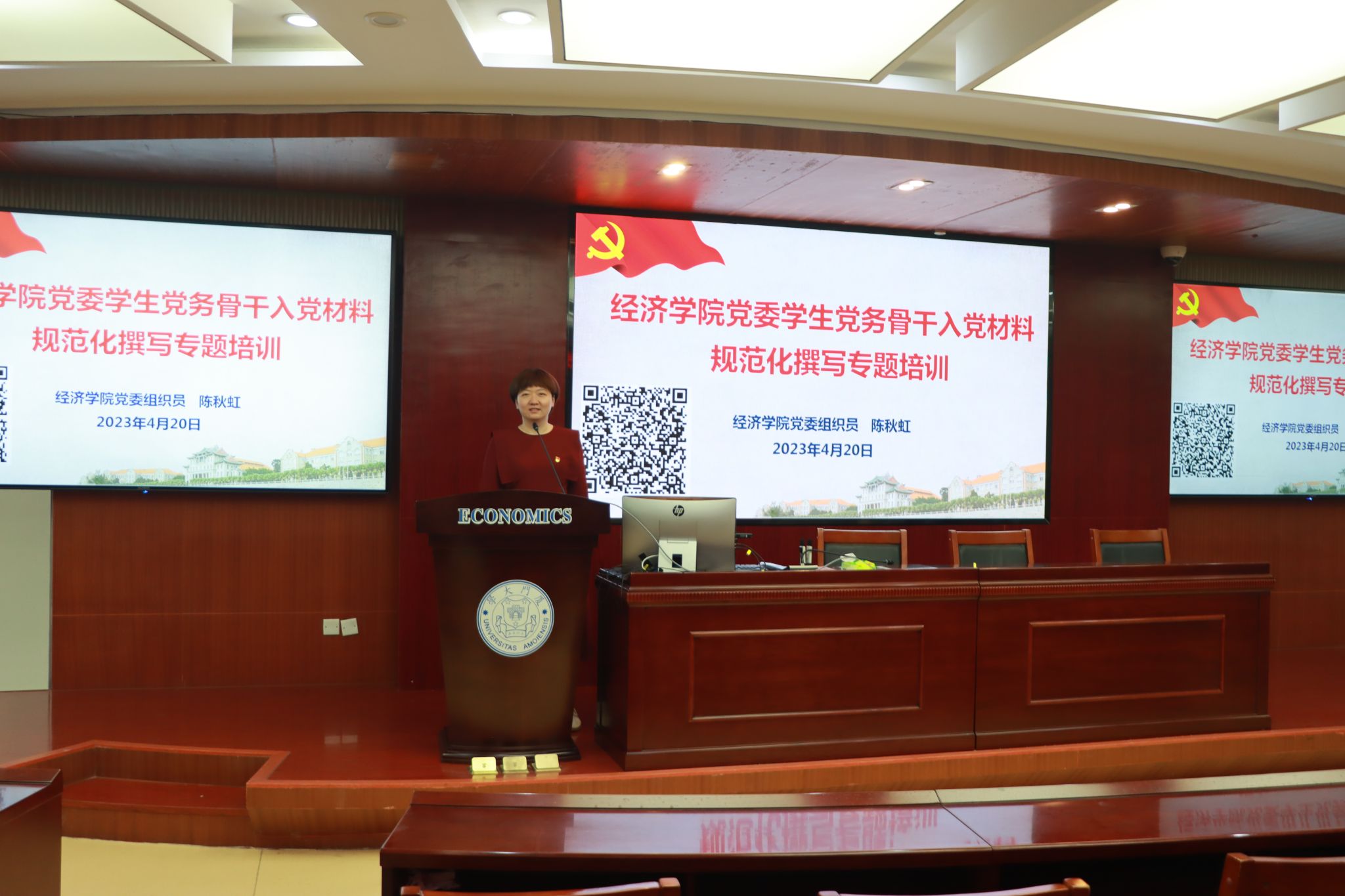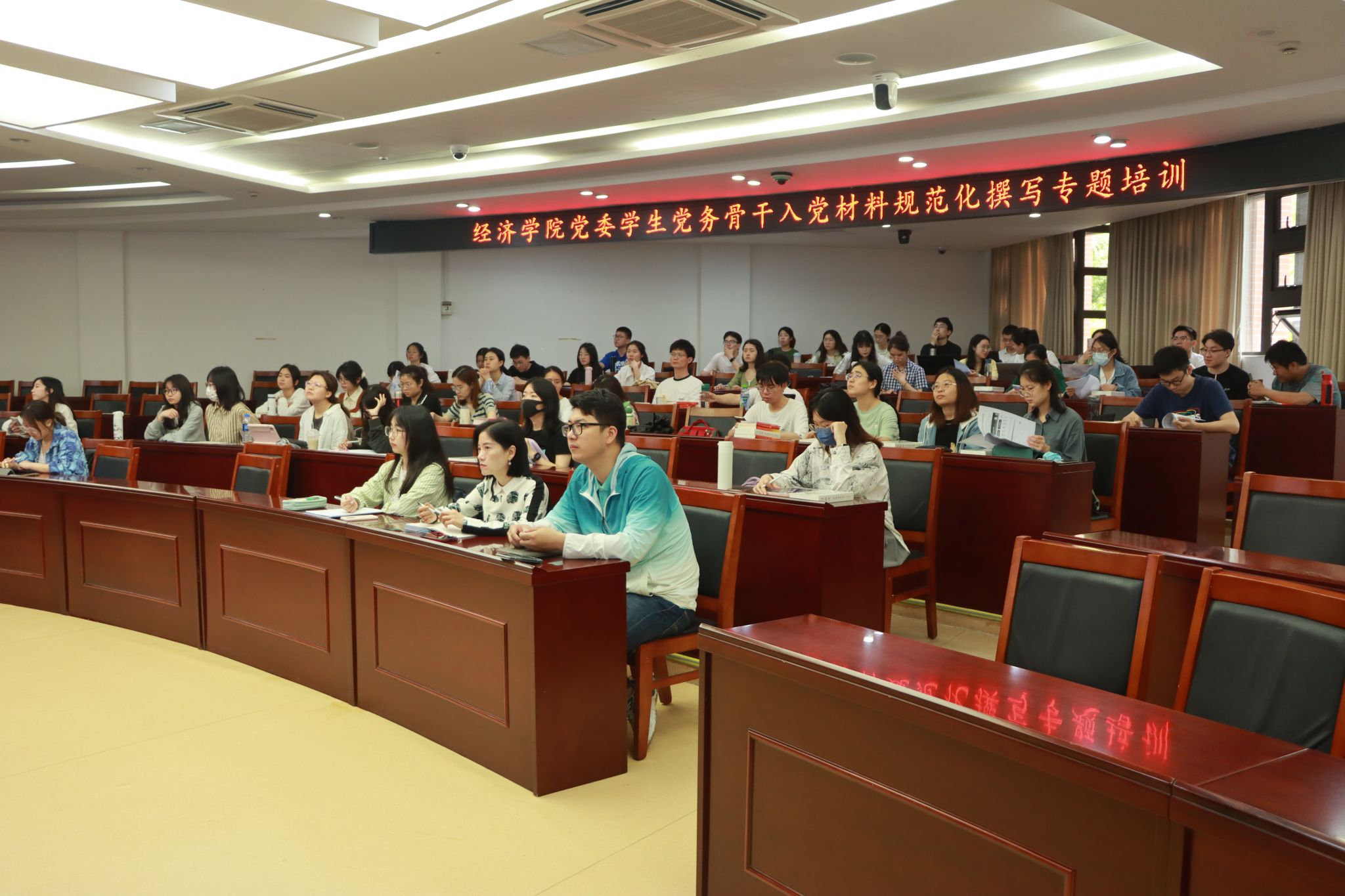 为全面提升发展党员工作科学化、规范化水平,确保发展党员材料填写规范有序,4月20日,经济学院党委开展2023年度学生党务骨干入党材料规范化撰写专题培训。培训由经济学院党委组织员陈秋虹主讲,学生党支部书记、副书记、委员参加了培训。