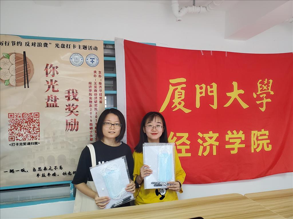 “听说,光盘有奖励?”“今天你光盘了吗?”成为近期厦园同学们的一句流行问候语。今年10月16日是第40个世界粮食日,为深入贯彻落实习近平总书记对制止餐饮浪费行为的重要指示精神,经济学院金融系2019级硕士生第一党支部、统计系2019级硕士生党支部、王亚南经济研究院2019级硕士生党支部在10月份联合承办了经济学院党委“厉行节约、反对浪费”光盘行动系列主题活动,发挥学生党员先锋模范作用,用实际行动带头制止餐饮浪费行为,倡导养成节约习惯。