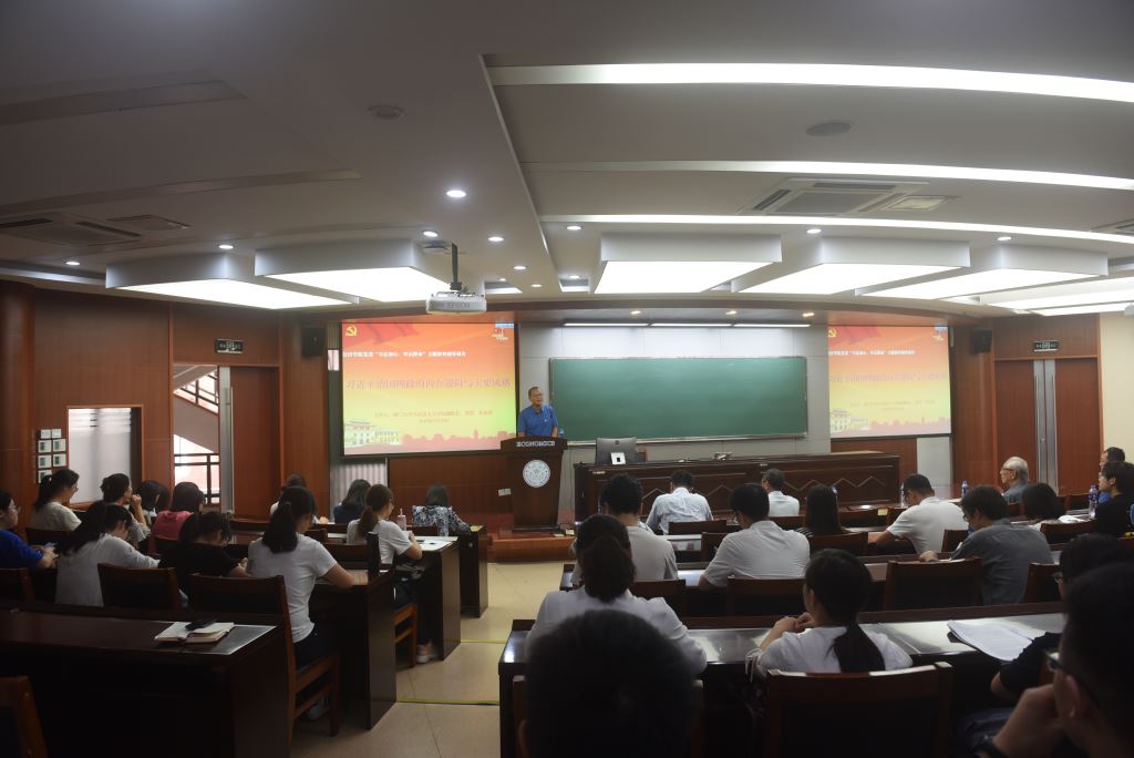9月29日下午,经济楼N302,学院党委邀请马克思主义学院副院长张艳涛教授作“不忘初心、牢记使命”主题教育专题辅导报告,学院党政班子成员、党委委员、教工党员和学生党员代表参加了报告会。报告会由学院党委副书记杜海林主持。