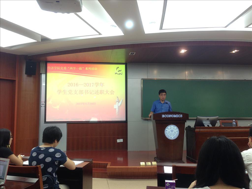5月11日,学院党委在经济楼N302、N118召开2016-2017学年学生党支部书记述职汇报大会。此次会议由学院党委副书记邱旺土主持,党委书记雷根强、副书记王艺宏、全体辅导员和学生党支部委员参加了会议。