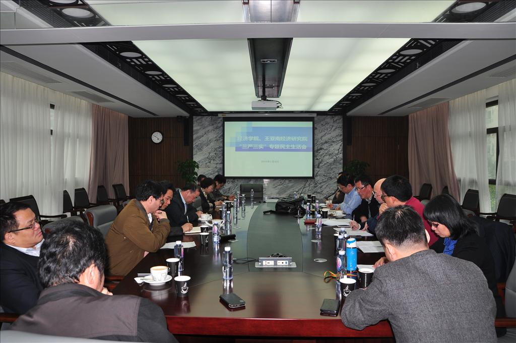 根据校党委的部署要求,1月4日上午,经济学院、王亚南经济研究院领导班子在经济楼N501召开“三严三实”专题民主生活会。学校第一督查组组长林金枝和副组长周一钦两位同志莅会,经济学院和王亚南经济研究院领导班子成员参加会议,各系(所、中心)正副主任及院工会主席列席会议。本次会议由学院党委书记雷根强主持。