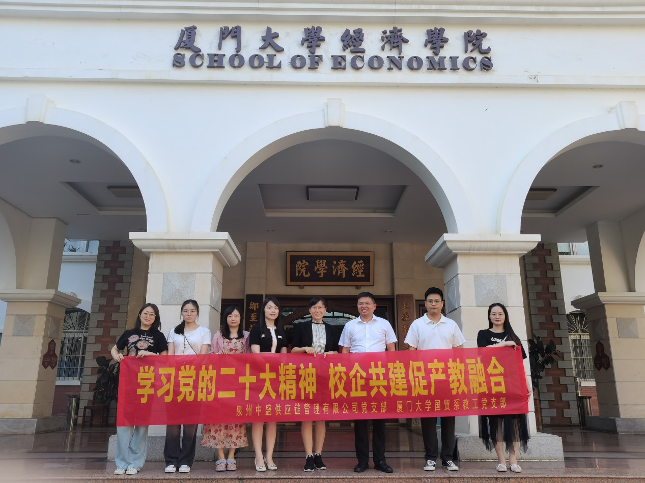 为深入开展学习贯彻习近平新时代中国特色社会主义思想主题教育,推进党建和业务工作融合发展,进一步推进校企合作、产教融合,探索基层党建工作新思路、新模式,2023年7月25日下午,厦门大学经济学院国际经济与贸易系教工党支部和泉州中盛供应链管理有限公司党支部在经济楼A417开展支部结对共建活动。国际经济与贸易系教工党支部副书记武力超和泉州中盛供应链管理有限公司党支部书记、执行董事、总经理王支良共同主持本次共建活动
