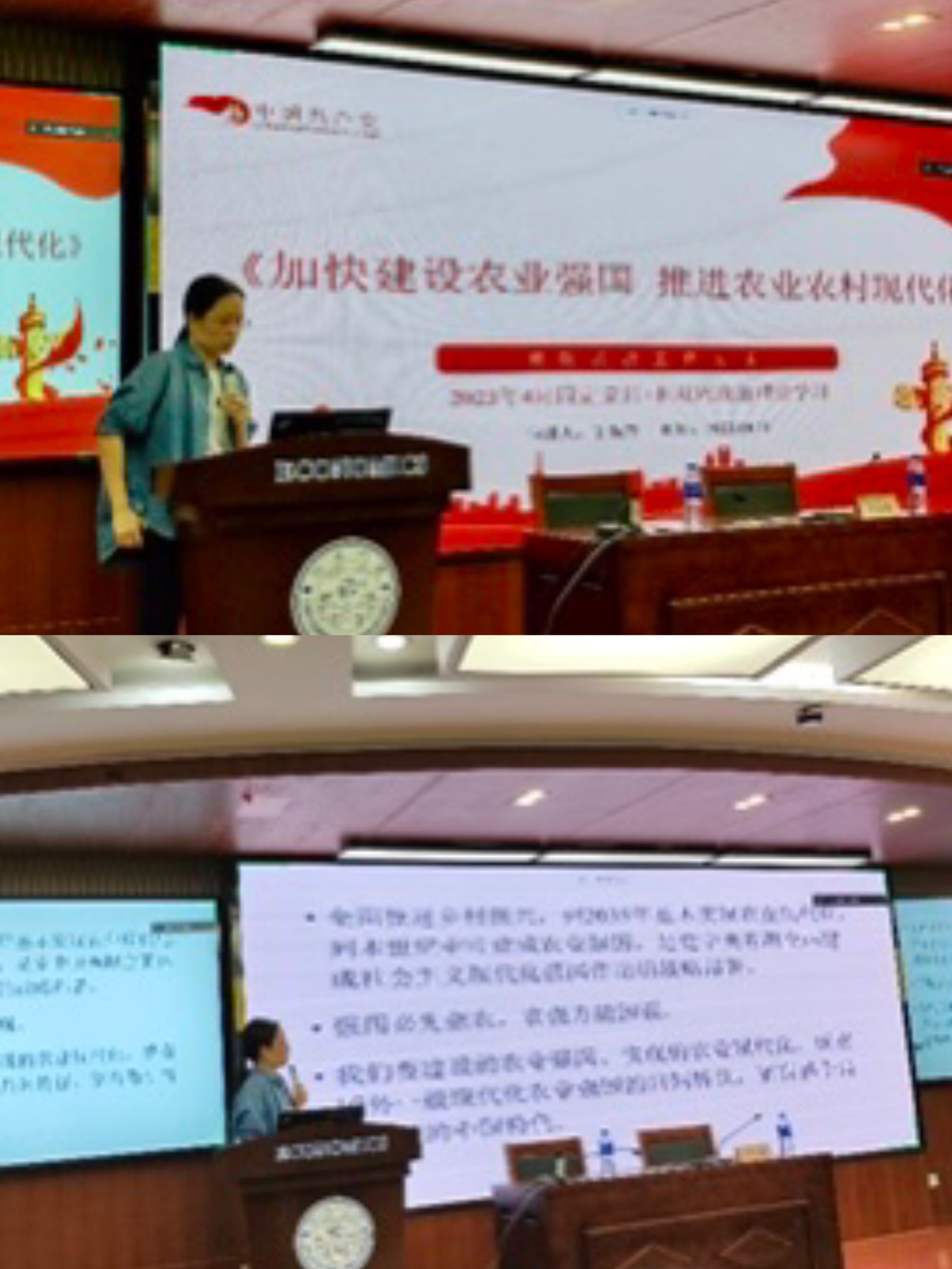 紧接着,教工支部丁锦秀老师领学《求是》2023年第6期习近平总书记重要文章:《加快建设农业强国 推进农业农村现代化》。强国必先强农,农强方能国强。我们建设的农业强国、实现的农业现代化,既有国外一般现代化农业强国的共同特征,更有基于自身国情的中国特色。丁锦秀结合自身的研究认为,我们应坚定科技才能强国,科研方能强农的信念,关注乡村振兴,服务三农事业,践行党员时代使命,真正把论文写在大地上,以实际行动贡献力量,用行动兑现承诺。