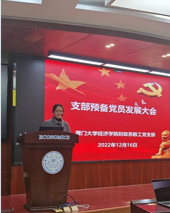 2022年12月16日中午,经济学院财政系教工党支部在经济楼N302召开了党员发展大会,讨论接收周斯凡同志为中国共产党预备党员事宜。本次党员大会共分为六个环节进行,由支部书记刘晔教授主持。