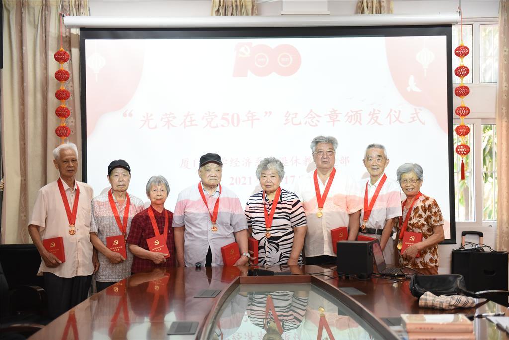 黄鸿德向获得纪念章的老同志们表示祝贺,感谢他们为厦门大学经济学院作出的重要贡献,“光荣在党50年”纪念章是对老党员的最高礼赞,也是对下一辈年轻党员的激励和鞭策, 增强了广大党员的荣誉感、归属感、使命感。