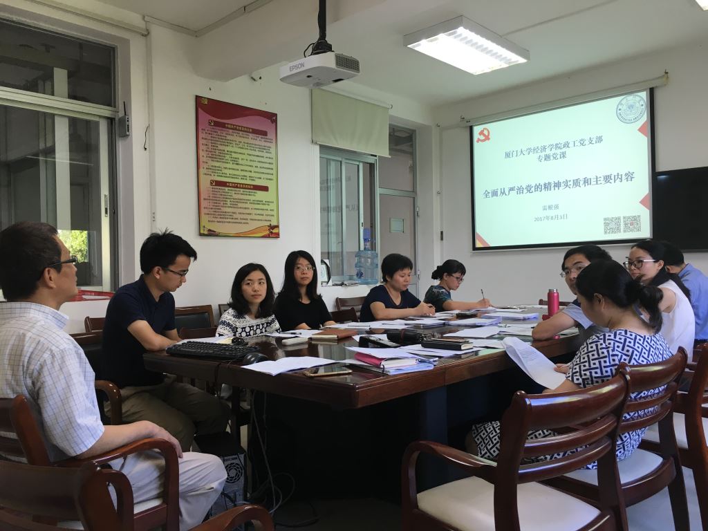 8月3日下午,经济学院政工党支部在A417举行“两学一做”学习教育常态化制度化专题党课和组织生活会,学院党委书记雷根强教授给支部上专题党课,并参与支部组织生活会。