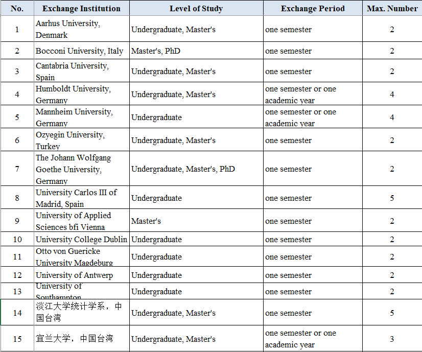 * Undergraduate applicants should have completed at least their first two years of studies at XMU before they enter the exchange program of the host university.
