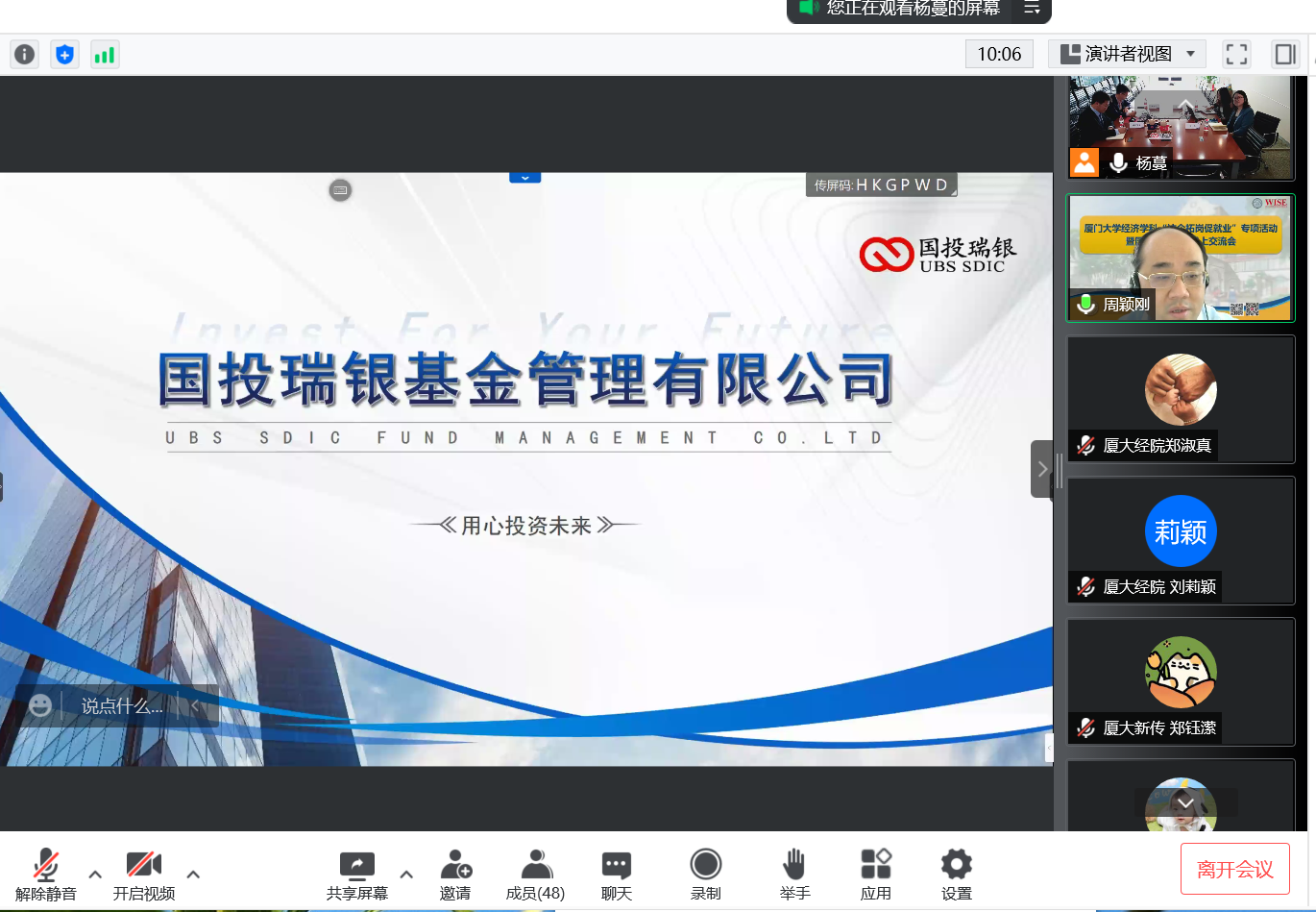 经济学科“访企拓岗促就业”专项活动暨国投瑞银基金线上交流会顺利举行