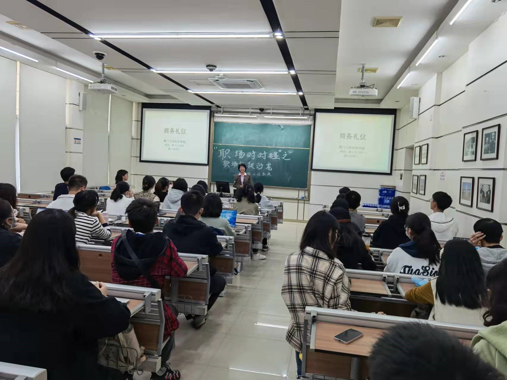 2021年12月11日15:00,为增强同学们的礼仪意识,培养必要的职场礼仪,帮助同学们在职场竞争中取得先机,提高个人竞争力,经济学院就业创业指导中心诚邀厦门大学经济学院经济系教授、博士生导师,前王亚南经济研究院副院长赖小琼教授为同学介绍关于职场礼仪的知识。