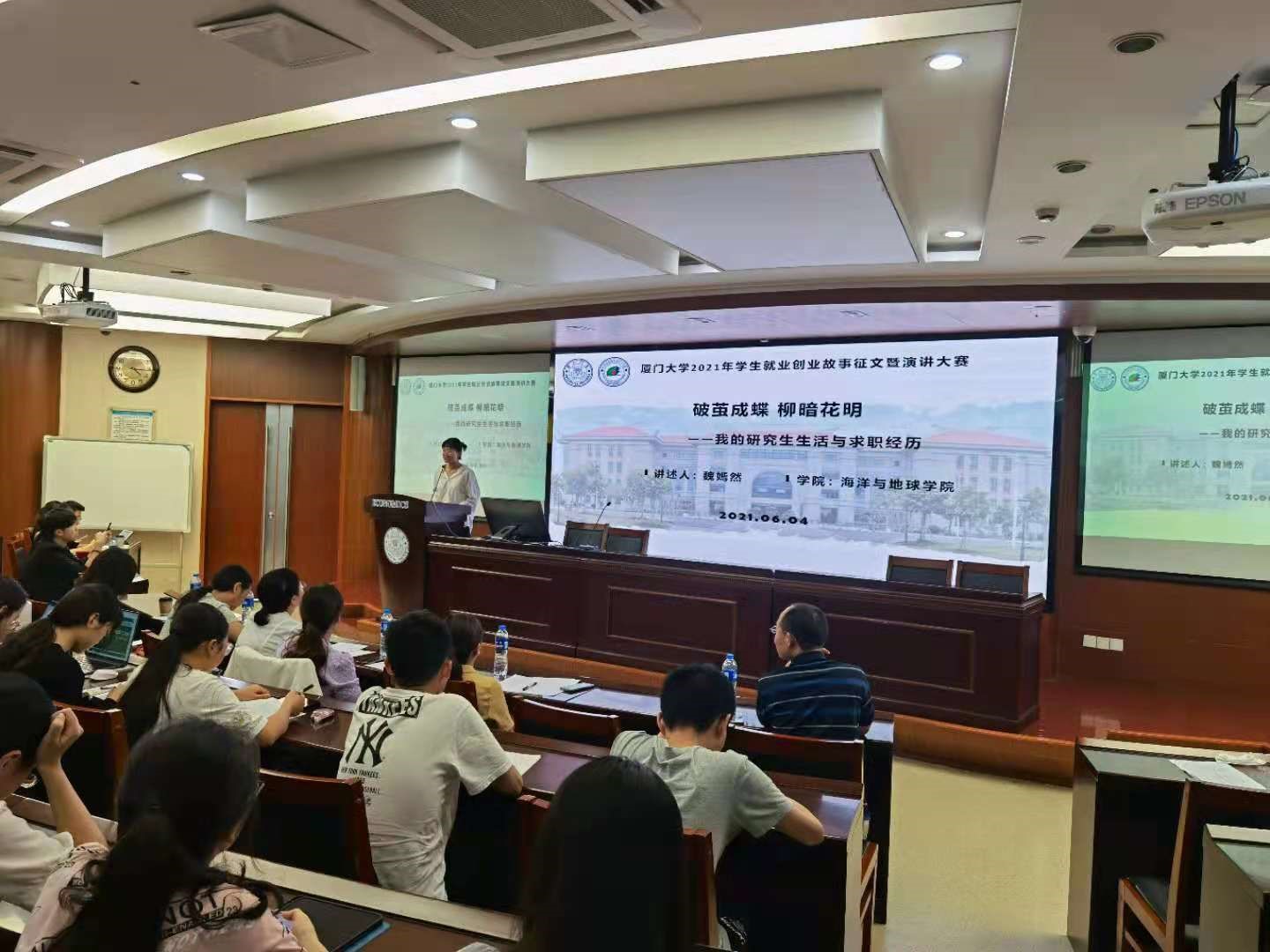 6月4日下午,由厦门大学学生工作处和厦门大学经济学院联合举办的厦门大学2021年学生就业创业故事征文暨演讲大赛决赛于经济楼N303报告厅圆满落下帷幕。活动旨在落实习近平总书记致厦门大学建校100周年重要贺信精神,引导和鼓励青年学生在服务和融入新发展格局上展现更大作为,对学生进行就业引导和生涯发展教育,积极倡导“国家至上,事业为先”的就业理念,引导广大学生“登上大舞台,做出大贡献”,进一步培养学生的家国情怀和服务国家发展战略意识,坚定他们到国家重要行业和领域就业的理想信念,全面提升学生就业核心竞争力,促进毕业生实现更高质量就业创业。新闻传播学院党委副书记聂鑫、马克思主义学院副教授杨玲、黄佳佳、晏振宇、肖盈、王亚群担任评委。
