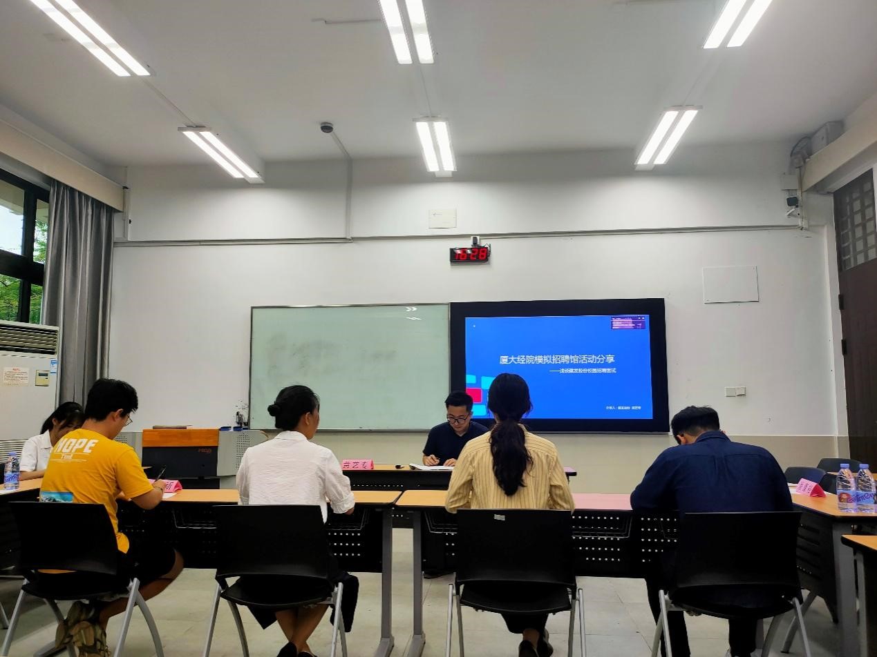 2021年5月29日下午15:30,经济学院“求职三部曲”系列之“模拟招聘馆”活动在南强二102教室再度举办。本次活动由厦门大学经济学院就业创业指导中心主办,邀请到了来自世界500强企业厦门建发股份集团的资深HR黄艺专先生担任面试官,为面试者做权威讲解与专业指导。