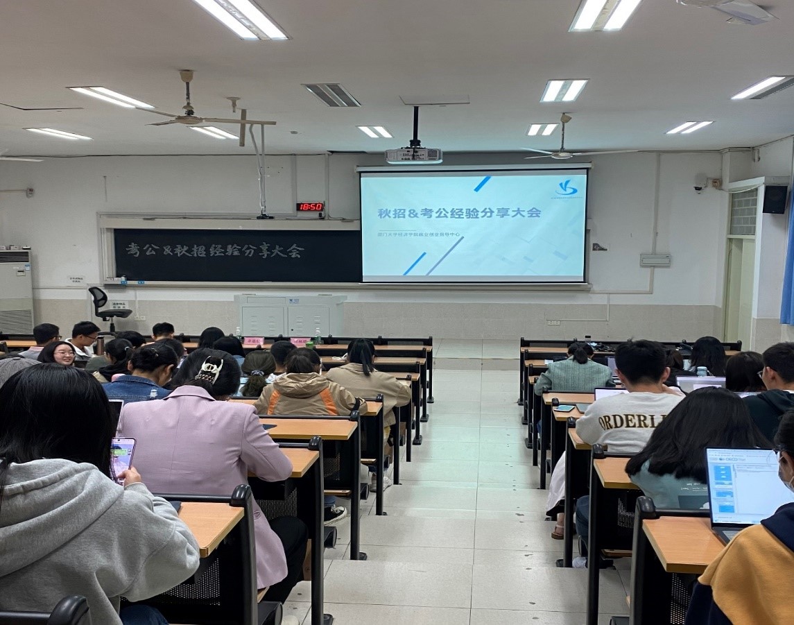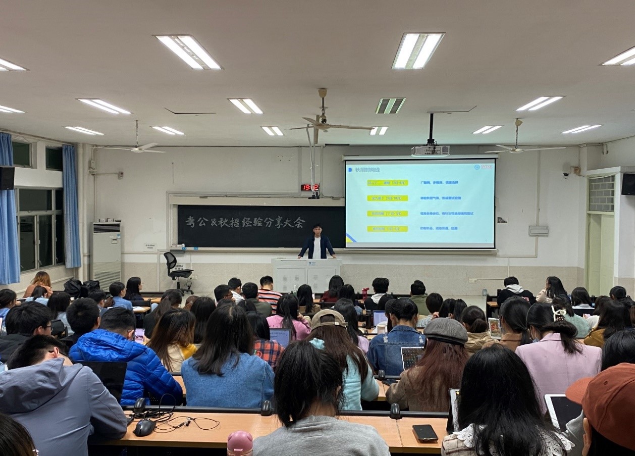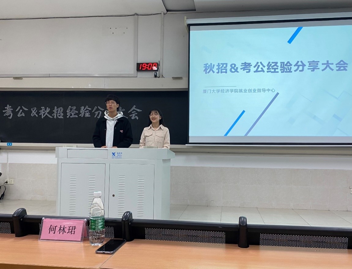 2021年4月10日晚,厦门大学经济学院就业创业指导中心研究生部在学生公寓306成功举办了考公&秋招经验分享大会。大会的两位嘉宾分别是来自2018级金融硕士的余嘉航学长和何林珺学姐。他们分别为大家带来了关于自己参加秋招和考公的经验感想,在场的同学们均受益匪浅。