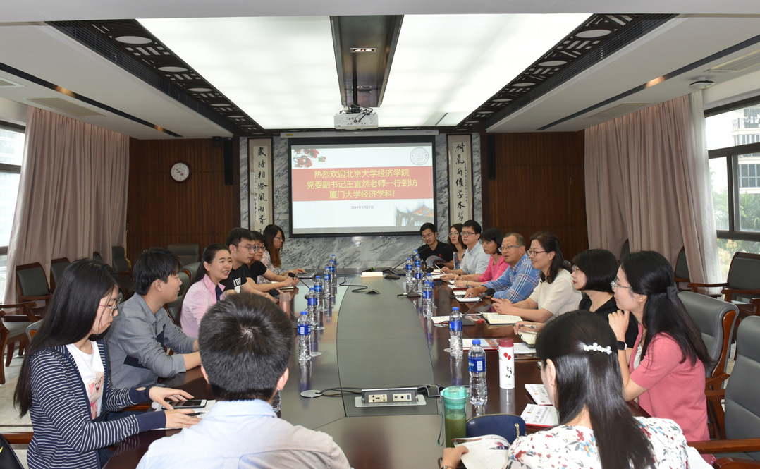 王宜然感谢经济学院学工组的热情接待。她说,北大学子勇于承担时代使命的传统和厦门大学是一致的,并表示此行着重调研厦门大学经济学院在党建、奖助、留学生管理等学生工作上的经验和做法。