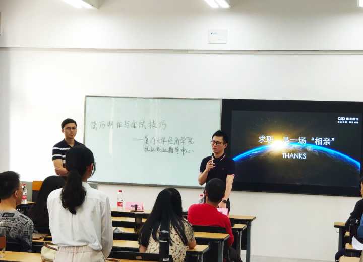 为了向同学们提供宝贵的学习机会与求职经验,经济学院就业创业指导中心于2019年5月12日下午两点在南强二201教室举办“简历制作与面试技巧”活动。本次活动邀请到厦门建发股份有限公司的陈庆辉先生与厦门象屿集团的龚佳猛先生两位资深HR为参与者进行全方面的指导和帮助。