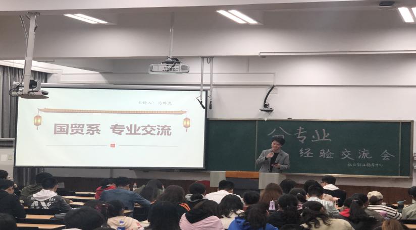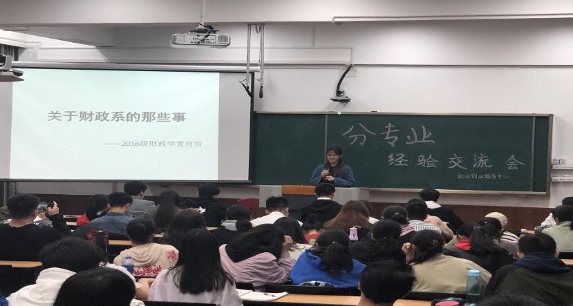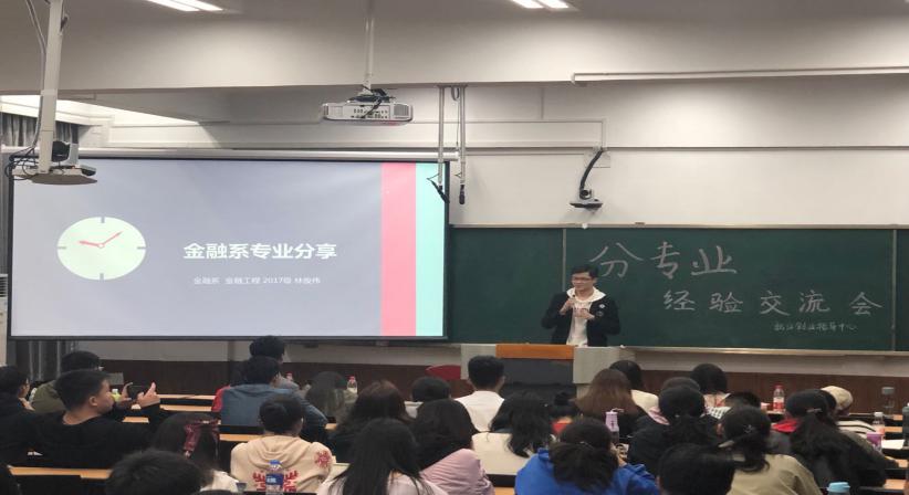 活动伊始,统计系的张萌同学幽默地提醒在场的同学们机遇和风险同在,理想专业与保研之间在很多情况下是鱼与熊掌不可兼得。接着,他强调了统计系对数学和计算机方面的能力要求较高,并结合一系列政府文件说明了统计系与人工智能之间的联系。第二位上场的陈文卿同学介绍了经济系的主修与辅修课程,同时提出了一系列值得同学们在选择专业时认真思考的问题,扫清了普遍存在于同学们心中学习经济学就不能从事金融工作的误区。第三位讲演的黄肖雪同学介绍了财政学独特的专业课模块,并结合生动的案例提示有志进入财政系的同学要避开专业课模块的雷区,并顺带提及了严峻的考研和保研形势。第四位上场的马璐尧同学别出心裁地制作了技能树,展现了大一各学科与国贸系各学科之间的密切关联。压轴上场的林俊伟同学展现了金融系令人咋舌的绩点,并建议同学们要学好数学和编程,为进入金融系作准备。他还告诉同学们应该要通过上网学习一些网课或去其他学院加课来提升自身的技能。