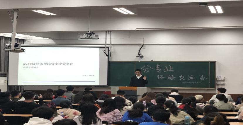 2019年3月16日晚七点半,经济学院第十七届“对话”系列之“分专业经验交流会”在南强二502教室顺利进行。本次活动邀请到了统计系张萌同学、经济系陈文卿同学、财政系黄肖雪同学、国贸系马璐尧同学以及金融系的林俊伟同学作为嘉宾,旨在通过五位嘉宾的介绍就专业课程学习、专业内竞争程度、保研比率、毕业去向等热点问题为大类班的各位同学答疑解惑。
