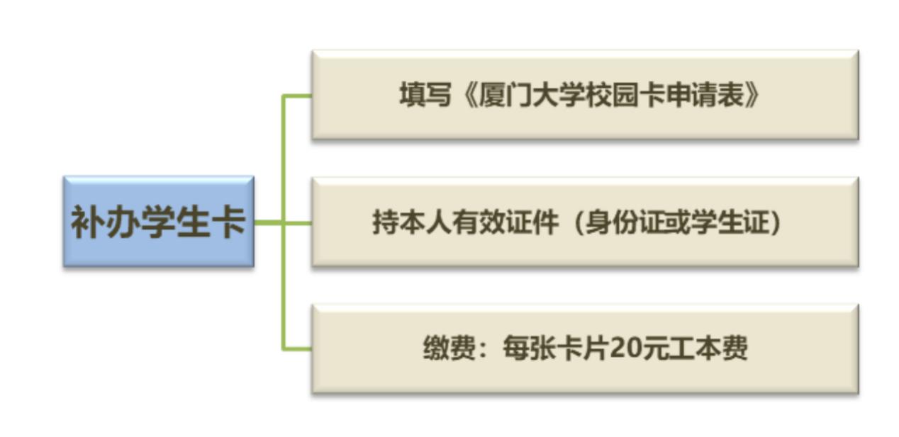 1. 持本人有效证件(身份证或本科生/研究生证)到一卡通台面进行校园卡补办,现场填写《厦门大学校园卡申请表》(校园卡补办点会提供)。