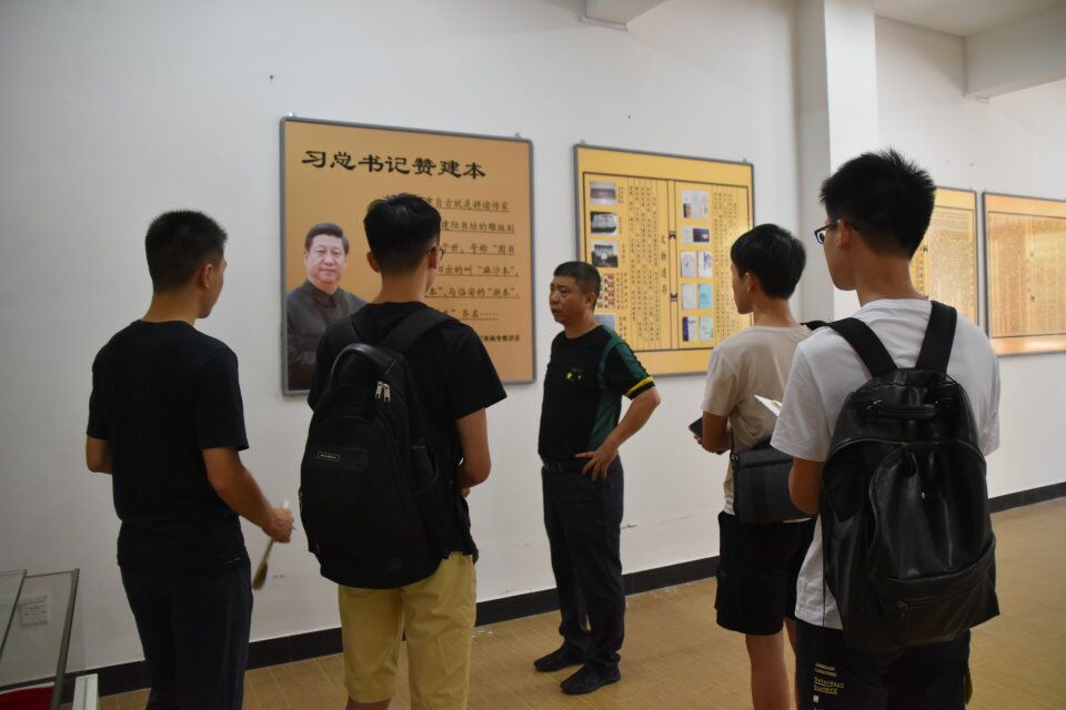7月24日下午3时,“本知百世”实践队前往建阳区博物馆,对建本进行调研。除了实践队的全体成员,建阳区博物馆馆长余贤伟也出席本次活动,对实践队成员们的活动进行指导。首先,余馆长带领实践队队员参观了博物馆的藏品。其间,余馆长从建本的兴起、建本的顶峰、建本的衰弱三个时期对建本的历史做出了详细的介绍。参观结束后,实践队员肖世龙对建本现在的保护情况进行了提问,余馆长对此表达了自己看法:“首先,经济发展是地方文化繁荣的关键,经济不好,想搞好文化保护十分困难;其次,文化保护取决于地方政府的重视。近5年,可以越来越明显感觉到区政府对于建本保护的重视。”随后,余馆长按照时间的顺序向实践队员们详细地介绍了近5年来建阳区政府对于建本保护传承所做出的成果。最后,实践队员们对余馆长和建阳区博物馆的工作人员们的辛勤工作道谢,并对余馆长的积极配合表示感激,并与余馆长合影留念。馆长也祝福实践队员们工作顺利,希望实践队员们能够在建本的保护和继承上做出自己的贡献。至此,“本知百世”实践队在建阳区博物馆的调研告一段落。