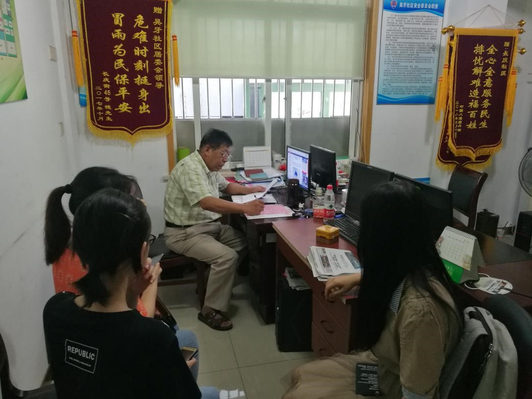14日上午,队员们探访了湖滨街道办事处及下属两所社区居民委员会,以及长庆街道办事处及下属一所居民委员会,针对光污染对居民生活产生的影响以及相关反映情况进行调查。根据社区街道办事处对于问题做出的回答,这样的污染问题如果在新城区会更多。老城区楼宇布局比较固定,商业区的影响不具有典型性,钱塘江周边会存在比较明显的问题。这么多年旧城区的相关问题基本得到了一定解决,或者已经通过协商达到一个平衡点。小队在上午的调查后也发现,靠近繁华路段的社区多为8年以上的老建筑,或许在之前有一定的矛盾和问题,但是一段时间之后这些问题都得到了协商解决。因此实践队决定放弃下午原先选取的另外两家街道办事处,临时联系到一个新建成不足5年的小区采访。
