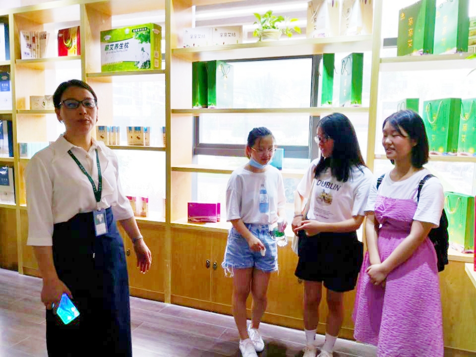 在蕲艾堂科技公司,企业负责人向队员们详细介绍了公司生产经营情况,该公司蕲艾产品品种一百多个,畅销全国,特别是广东、浙江、上海等沿海地区,每年销售收入近2亿元。随后,她带领队员参观了蕲艾精品超市以及生产包装车间,琳琅满目的蕲艾精品、工人忙碌的身影以及整装待发的运输车辆,充分显示了复工复产后企业生产的繁荣景象。
