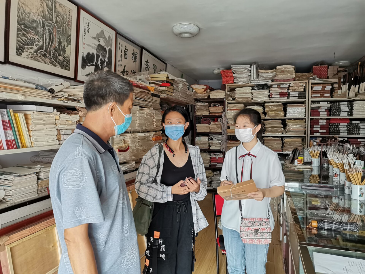 由于疫情影响,泰安旅游业受到冲击,给本就是小众文化产品的祥宝斋毛笔带来更大挑战;即便是疫情常态化的今天,祥宝斋毛笔销售情况依旧不容乐观。队员们了解到目前祥宝斋还没有进行网络销售,仍是传统的线下零售。