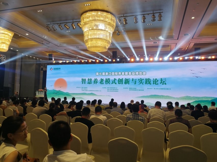 在博览会大厅的另一端,思锐信息技术股份有限公司董事长——李海董事长,在浙商厅发表了“智慧养老模式创新与实践——互联网+养老”的主题演讲,实践队有幸聆听了此次演讲。