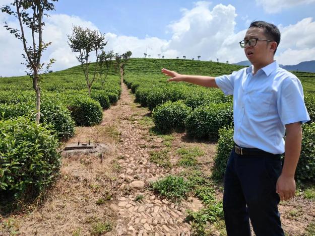 在光泽县农村信用合作联社李坊信用社李钟海主任的带领下,实践队来到了光泽县的管蜜村考察。管蜜村是个有千年文化底蕴的小村庄,修建于明代嘉靖年间的“曾氏家庙”古香古色,历时500年之久现主体结构仍保存原貌。管蜜村山林资源丰富,其得天独厚的气候和自然环境条件适宜梨树、茶叶等作物的生长。实践队员们跟随着李钟海的脚步,一步一步地登上了茶山,看着遍野嫩绿茶叶,李主任表示,茶园的有序规划,离不开当地政府的支持和劳动农民的共同努力。