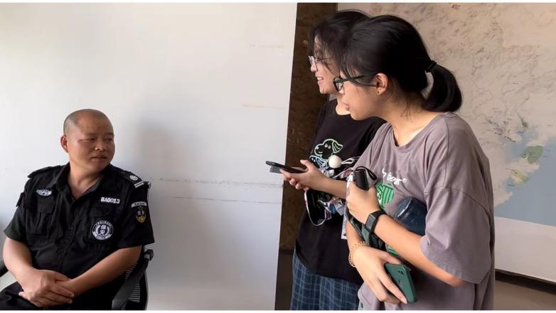 图5采访游客 图6采访工作人员