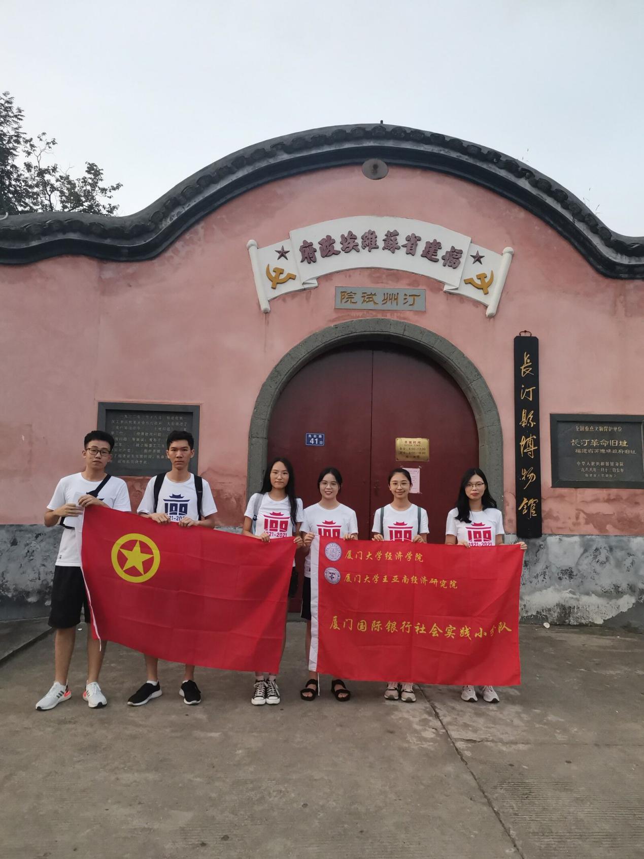 2021年7月17日上午,厦门大学经济学院“向风而汀”实践队前往福建省龙岩市长汀县博物馆进行建党百年党史学习调研。
