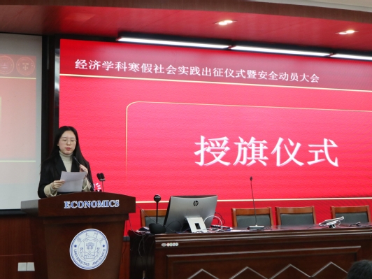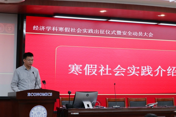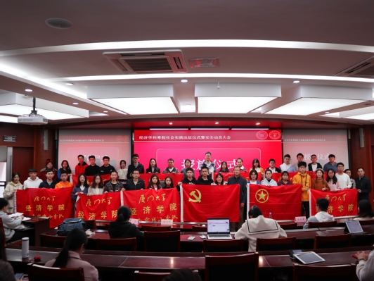 为充分调动同学们参与社会实践的积极性,营造积极向上的氛围,2021年厦门大学经济学科寒假社会实践出征仪式暨安全动员大会,于12月18日中午在经济楼N302圆满举行。经济学院党委副书记杜海林老师、团委书记刘莉颖老师、团委副书记王华老师、辅导员徐惠聪老师、研究生会主席肖天豪、研究生团总支副书记杜思雨以及实践队代表出席了本次活动。