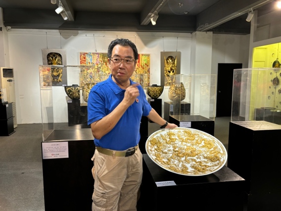 参观展厅,漆线雕艺术初体验。在蔡氏漆线雕的一楼展厅,实践队成员们首先被一系列精美的漆线雕作品所吸引。这些作品大多以龙凤等中国传统意象为主题,红色、金色、黑色等为底色,线条流畅,色彩鲜艳,充分展示了中国传统工艺的精湛技艺。通过细致的观察和询问,实践队成员们初步感受到了漆线雕艺术的独特魅力。
