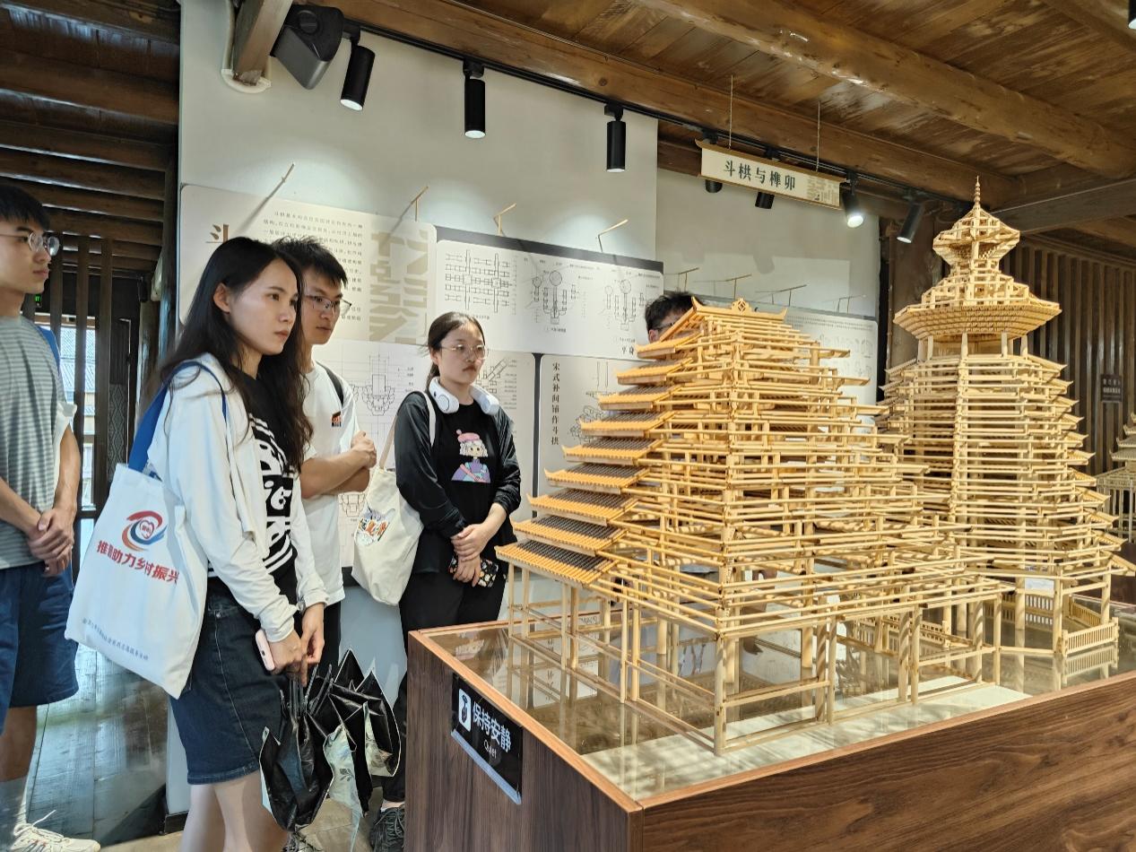 在程阳八寨,队员们走进了中国最大的侗族木构建筑博物馆,跟随向导了解国家级非物质文化遗产——侗族木构建筑技艺的工艺原理。