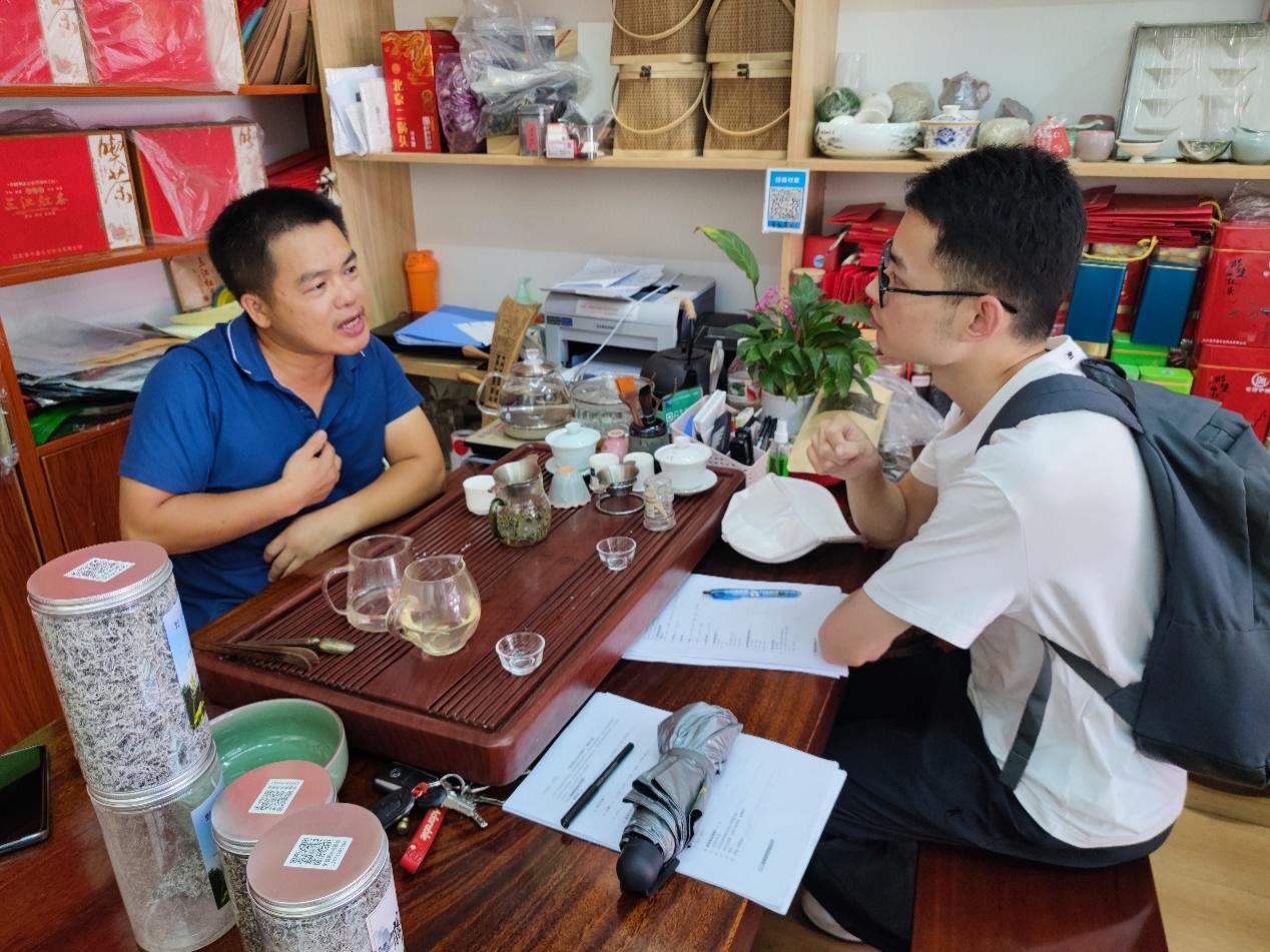 实践队同三江县委办、团县委、科工贸局、文体广旅局、县文旅、茶业、侗族非遗等相关企业开展专题座谈会,以“电商产业发展与企业数字化转型”为主题,结合实践经历分享了见闻主张,就塑造营商环境、数字技术应用、城市更新等问题同当地政府展开交流探讨。