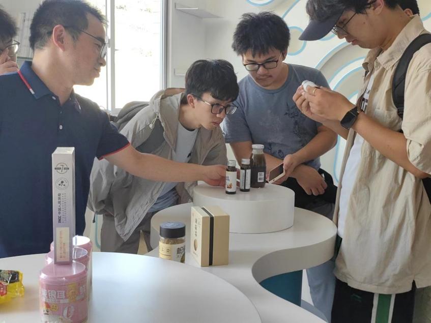 图2:菌业研究院工作人员向队员们介绍创新产品