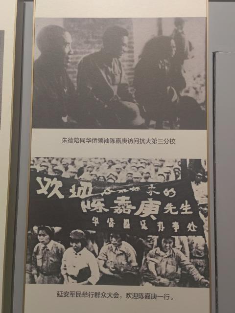 通过馆内展出的珍贵照片和文献,实践队成员们目睹了陈嘉庚在延安各界群众欢迎会上发表讲话的历史瞬间,感受到了延安军民对陈嘉庚先生的热烈欢迎和深厚敬意。一张展现5000余名延安各界人士在南门外广场举行欢迎大会的照片,尤其让队员们动容,留延华侨举着欢迎横幅站在群众队伍最前面的场景,生动体现了华侨对祖国抗战的坚定支持和爱国情怀。