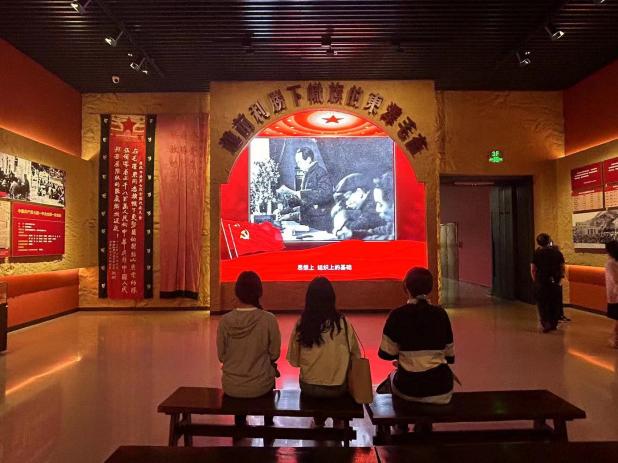 接着,实践队伍来到了延安红街,这条长达1.5公里的街道不仅是延安红色旅游的新亮点,更是承载着红色文化记忆与传承的重要街区。红街的设计以1935年至1948年党中央在延安的十三年历史为主线,通过会师广场、边区广场、圣地广场、抗大广场直至胜利广场的布局,巧妙地将党中央在延安的革命历程以线性的方式展现给游客,使得每一位到访者都能在游览的过程中深刻体验到那段充满激情的延安革命岁月。