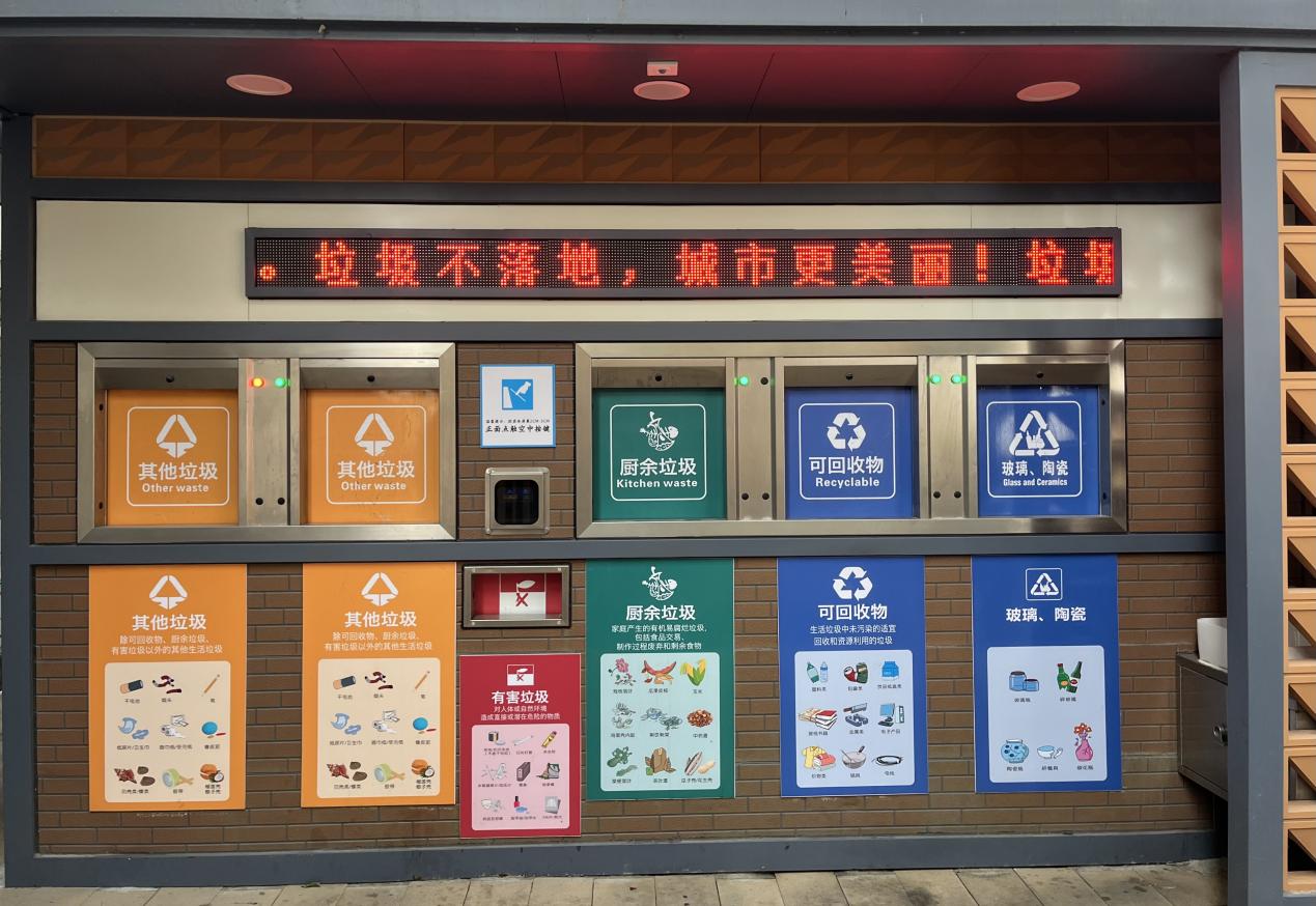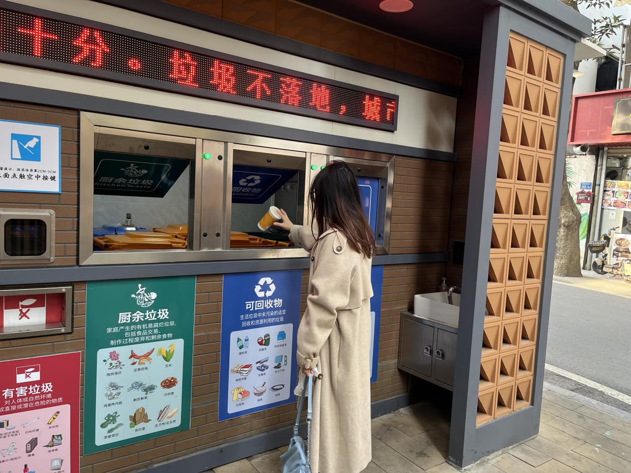 2023年年底,黄厝社区新建成一座“智慧垃圾屋”并且首次引入了“非接触式”智能垃圾分类系统。队员们通过实地调研黄厝社区垃圾分类的具体情况发现,该“智慧垃圾屋”按照垃圾处理类型分为可回收物、玻璃陶瓷、厨余垃圾、有害垃圾和其他垃圾等五大类,居民只需轻触感应按钮,相应的垃圾分类窗口便自动开启,从而减少与垃圾桶的直接接触,提升垃圾投放的卫生性和便利性。该项“低碳高科技”设施一经投入使用,便获得社区居民广泛的好评与关注,成为社区环境治理中的一大亮点。