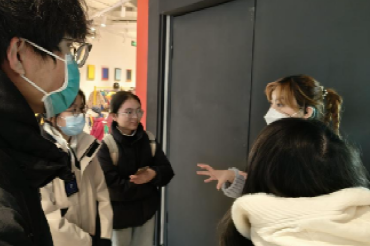 图1:熊爪咖啡店员工为实践队队员介绍熊爪咖啡的创立初衷
