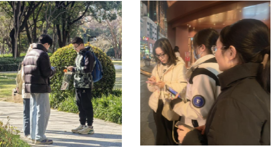 在走访调研的间隙,队员们来到了两家咖啡馆附近的商圈和公园,积极开展问卷发放与访谈工作。有几位路人热情地与队员们分享自己的看法,提出了许多宝贵的意见与建议,给队员们提供了不少新的思路。