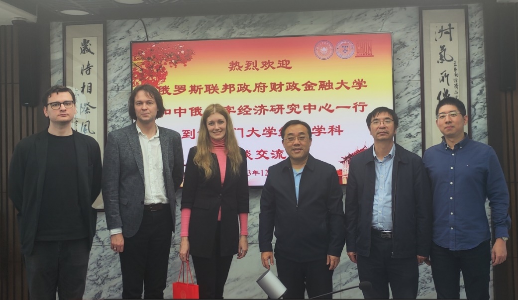 under the Government of the Russian Federation,以下简称“俄罗斯财政金融大学”)国际商务部主任Marina Amurskaia、国际商务部科研副主任Andrey Kulikov,中俄数字经济研究中心俄方副主任Vladislav Guluzinskiy、中方秘书处干事乔震邦、成果转化部负责人李阳和俄方秘书处干事Sofia Riazanova一行到访经济学科,经济学院和王亚南经济研究院院长周颖刚教授、经济学系主任张兴祥教授和祝嘉良助理教授等与来宾会面,与会人员进行了友好交流座谈。