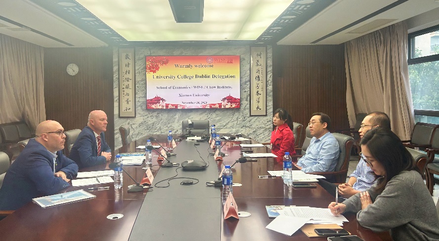 爱尔兰都柏林大学始建于1854年,是爱尔兰最大的综合性国际大学,其国际员工占比近30%,其商学部获得EQUIS、AACSB和AMBA国际商学领域三重认证。厦门大学经济学科与爱尔兰都柏林大学商学部奎恩商学院和斯莫菲特商学院(Michael Smurfit Graduate Business School)自2010年起便展开多方位合作。本次都柏林大学商学部副部长一行到访,加强了双方往来,两校将继续保持联系、深化合作交流。