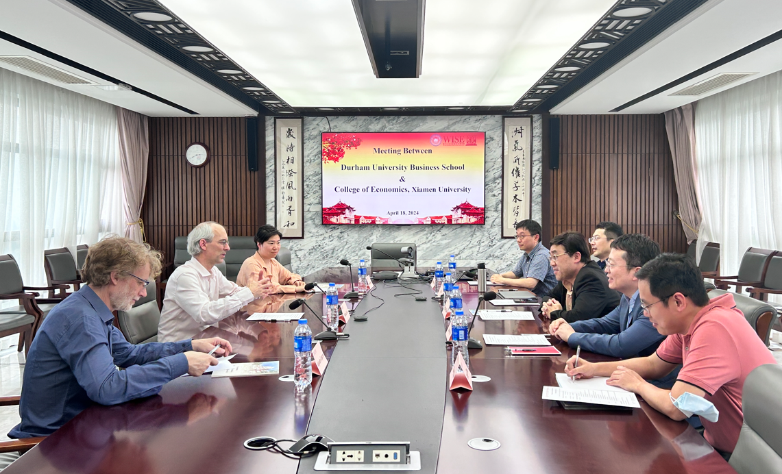 4月18日,英国杜伦大学商学院(Durham University Business School)经济系主任Michael Naef教授、Alejandro Caparros教授和郑雅文助理教授一行到访经济学科,经济学院和王亚南经济研究院院长周颖刚教授,邹至庄经济研究院副院长薛涧坡教授,经济学科韩晓祎教授、李智副教授、赵敏强副教授等与来宾会面,双方进行了友好座谈交流。
