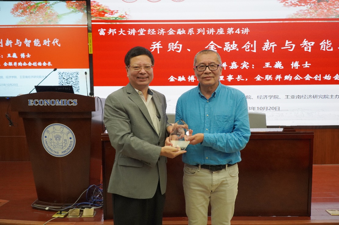 10月20日,厦门大学富邦大讲堂经济金融系列讲座第四期在厦大经济楼N302报告厅举行,金融博物馆理事长、全联并购公会创始会长王巍博士应邀开讲。