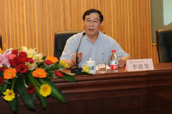 李建发致辞中说,教育部将教育事业统计基地设在厦门大学,这是对厦门大学的信任,厦门大学将全力支持该基地各项工作。他简要介绍了厦门大学、厦门大学经济学科和统计学科,同时他表示,在教育部领导的关心与支持下,本次全国教育事业统计培训班一定会取得预期效果。