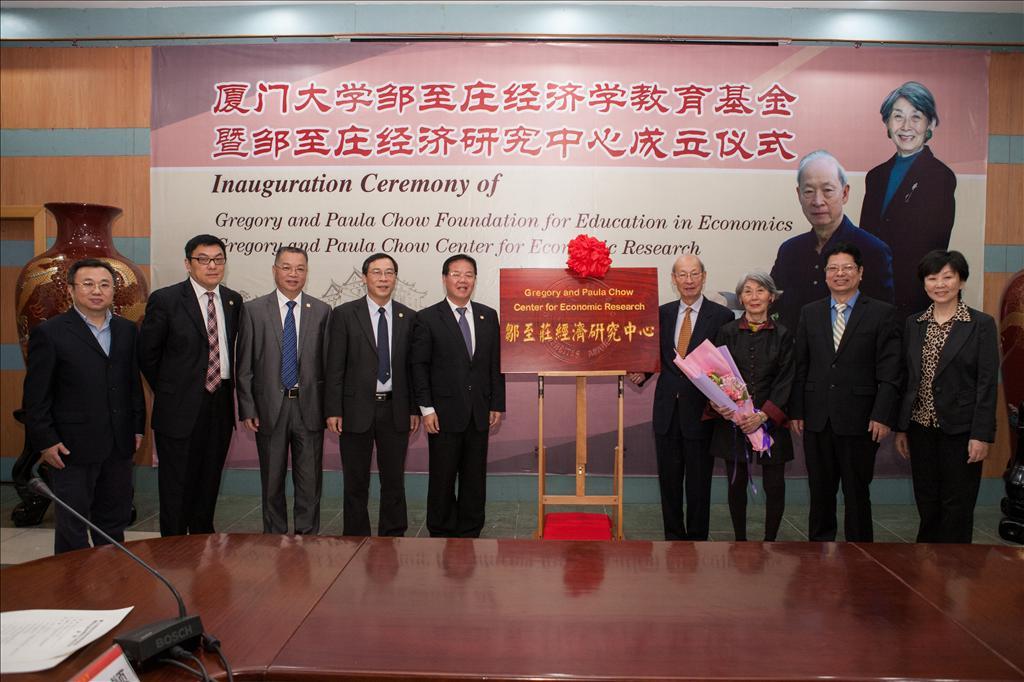 12月4日,厦门大学邹至庄经济学教育基金暨邹至庄经济研究中心成立与揭牌仪式在厦大颂恩楼隆重举行,这是厦大经济学科的一件盛事,也是中国经济学界的一件盛事。教育基金和研究中心,实际上是由邹至庄教授与夫人邹陈国瑞共同资助设立,这从相应的Gregory and Paula Chow Foundation in Economics与Gregory and Paula Chow Center for Economic Research的英文名称中体现出来。