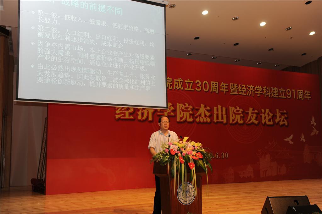 6月30日下午,经济学院成立30周年暨经济学科创立91周年系列庆祝活动之“杰出院友论坛” 在科学艺术中心音乐厅举行。论坛由副院长朱孟楠主持。