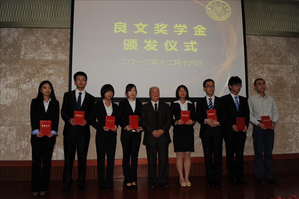 随后,黄良文教授的弟子、上海财经大学国际工商管理学院院长助理朱小斌向各位来宾概括介绍了“黄良文教授统计学科教育发展基金”的设立初衷、管理机制以及目前捐款情况,并对全体捐款者表达最衷心的感谢。我校经济学院统计系副主任周永强宣读本年度“良文奖学金”授奖情况并宣读获奖人名单,黄良文教授亲自上台为获奖同学颁发证书。