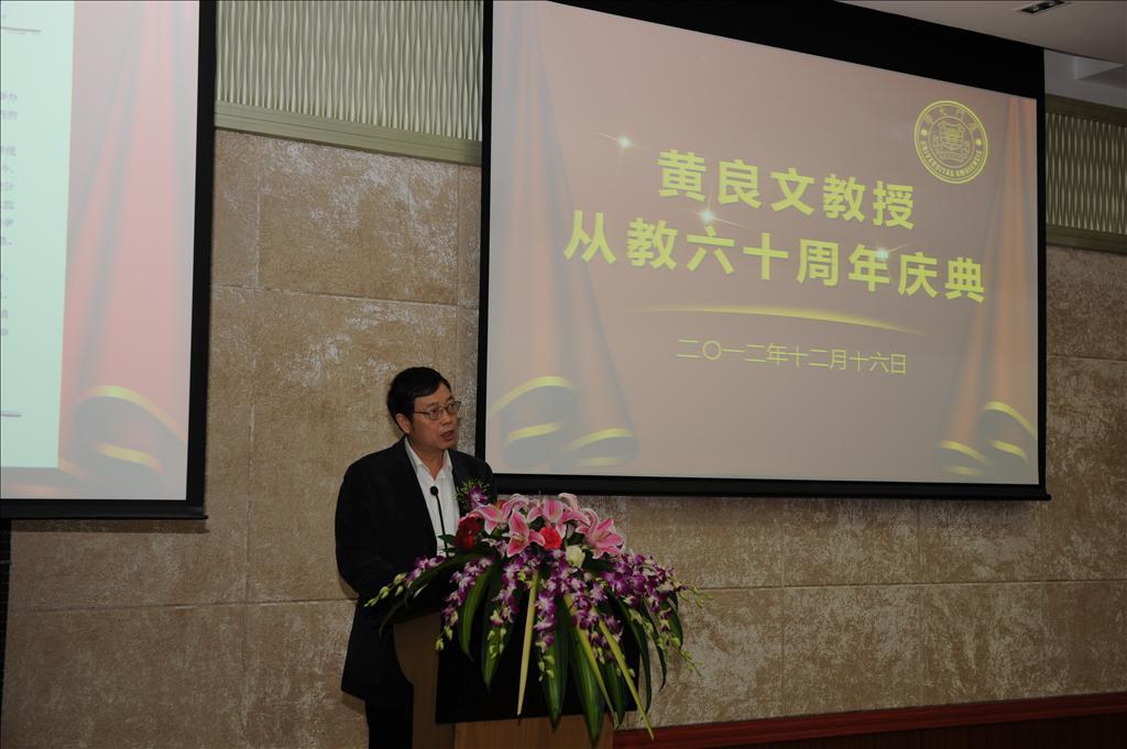 本次庆典上,中央政治局常委张高丽专门委托秘书致予贺辞。国家统计局副局长徐一帆,厦门市委常委、宣传部部长叶重耕,厦门大学党委副书记、副校长李建发,对外经贸大学校长施建军,西南财经大学统计学院教授庞皓,中国人民银行福州中心支行行长吴国培,天津财经大学统计学院院长肖红叶,中国统计出版社社长严建辉,厦门大学原副校长吴世农,福建省统计局副局长陈志强,中国统计学会常务副秘书长许亦频,中国人民大学统计学院院长金勇进,厦门大学经济学院、王亚南经济研究院洪永淼,厦门大学经济学院党委书记雷根强,黄良文教授的众多弟子以及亲朋好友和我校经济学院师生代表400余人出席了庆祝大会。经济学院统计系副主任陈建宝主持大会。