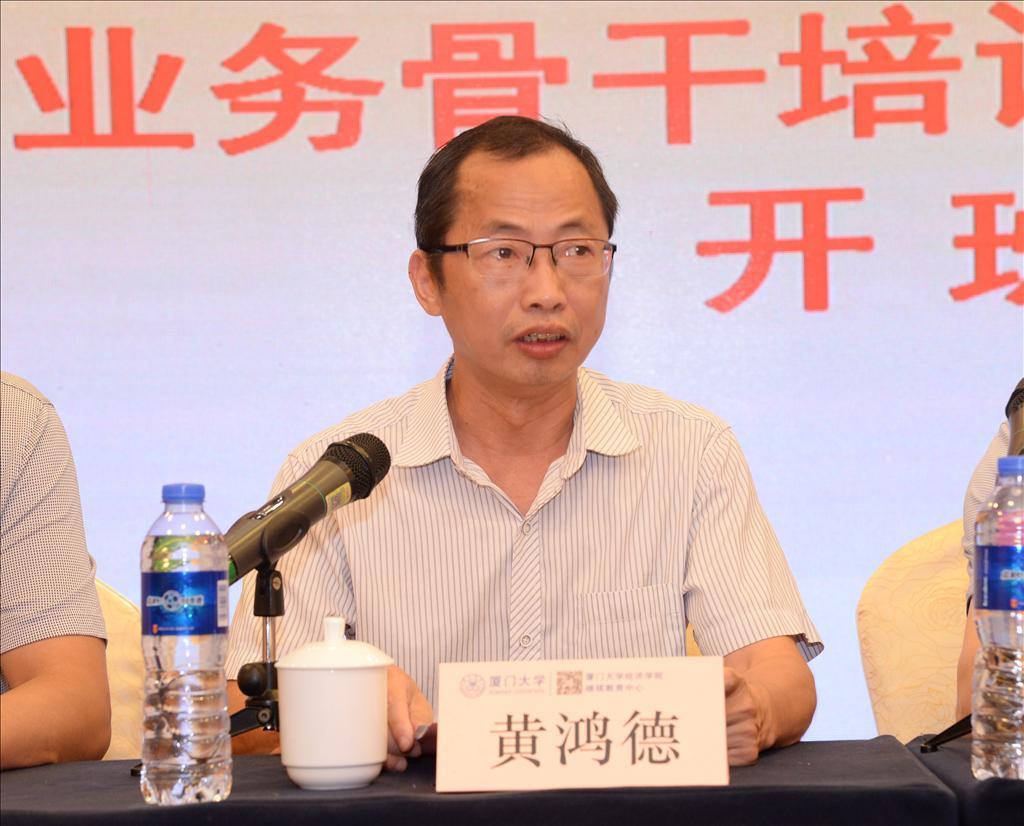 黄鸿德首先代表厦门大学培训基地对教育部和河北省教育厅的领导及学员的到来表示热烈的欢迎。并着重为学员们介绍了厦门大学及作为培训基地依托的厦门大学经济学科的情况。随后黄书记介绍了厦大基地培训的开展情况:2012年厦大成为教育部首批教育事业统计的培训基地,截至2017年共培训了全国各省市共43期的4685名教育统计业务骨干。他希望学员在这几天的学习时间里,能学有所成,学有所得,学有所获。