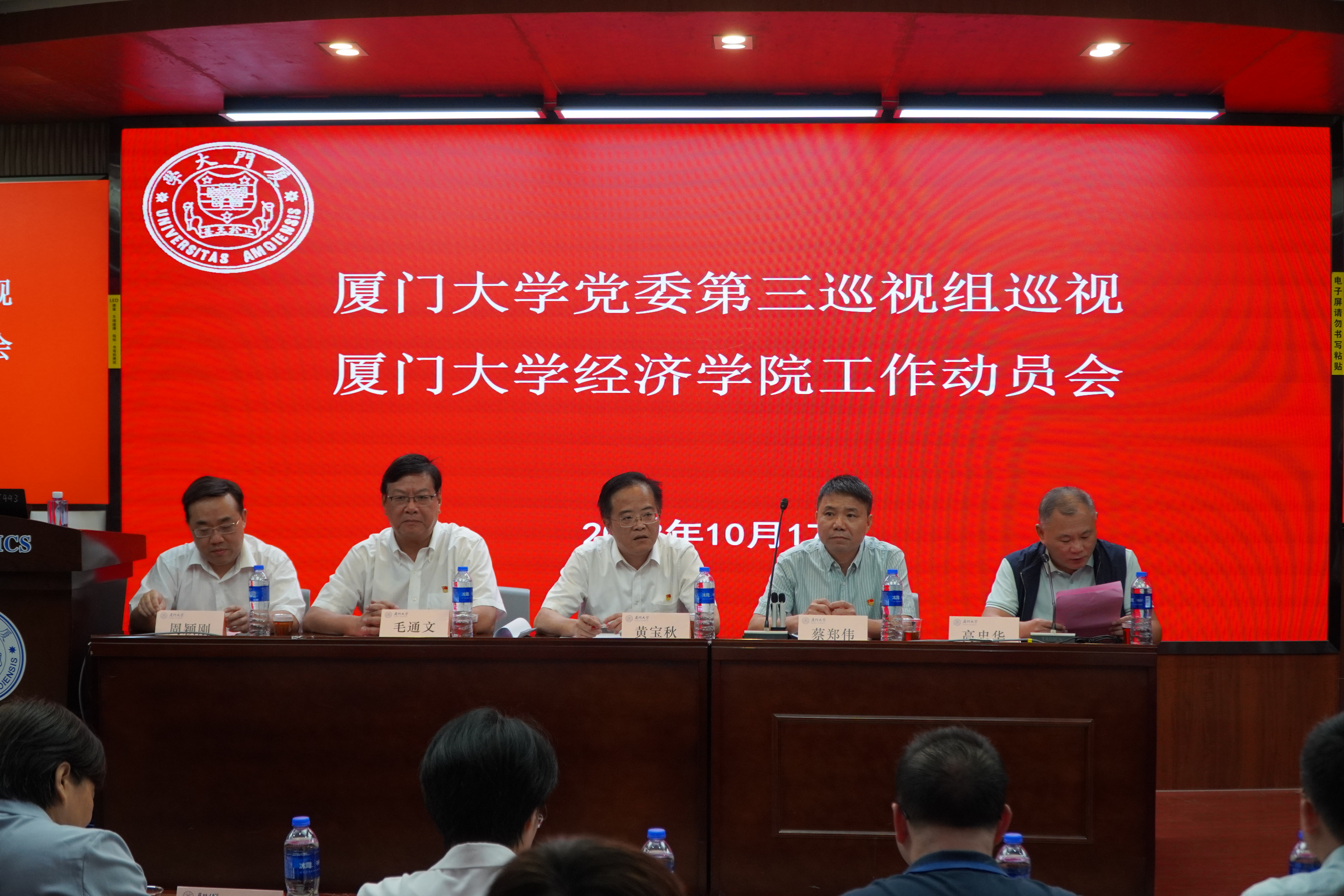 根据校党委统一部署,10月17日下午,厦门大学党委第三巡视组巡视经济学院工作动员会在经济楼N302会议室召开。校党委巡视工作领导小组成员、校纪委副书记黄宝秋,校党委第三巡视组组长蔡郑伟、副组长毛通文,校党委第三巡视组其他成员,学院在职教职工和部分担任过班子成员的退休干部参加了动员大会。大会由学院党委书记高忠华主持。